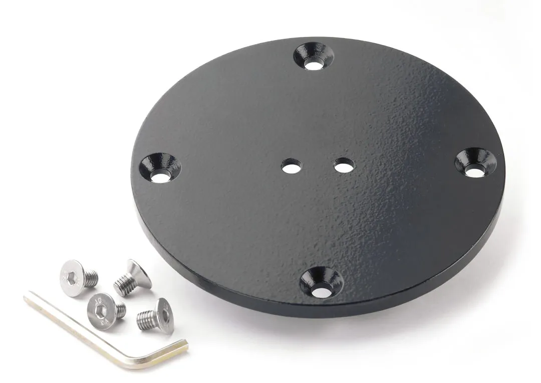 A versatile mounting plate that fits any pole tube and can be bolted to various base types or directly to the floor.
